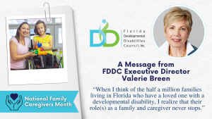 When I think of the half a million families living in Florida who have a loved one with a developmental disability, I realize that their role(s) as a family and caregiver never stops. Of course, all of us as parents take on the role of caregiving and support when our children come into this world with hopes