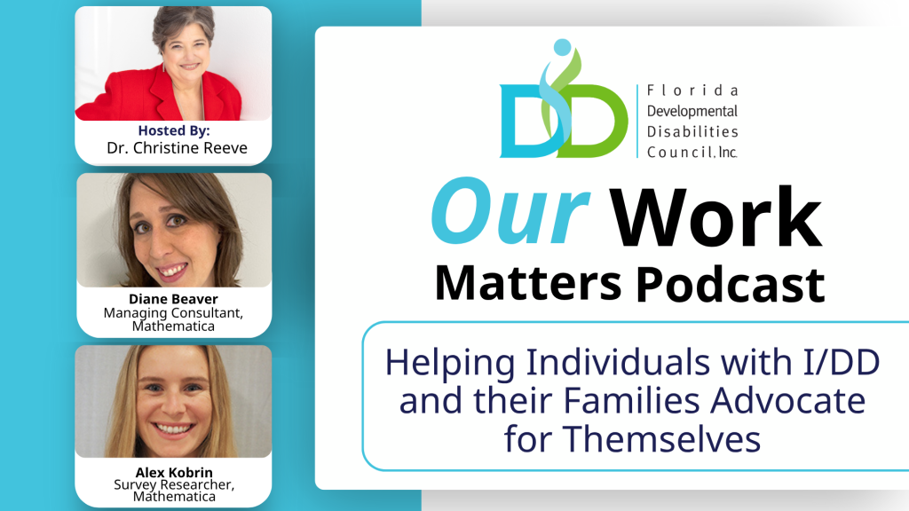 Whether you are a self-advocate or a family member/caregiver of an individual with intellectual and developmental disabilities (I/DD), this podcast has tools to help you advocate for the developmental disabilities community and promote inclusion in your state and local community. Join Dr. Christine Reeve, a Program Director at the Florida Developmental Disabilities Council (FDDC) as she interviews project partners, family members, caregivers, and self-advocates about ways to help advocate in your community and resources available from the FDDC. Join our community to help build inclusive environments and opportunities for those with developmental disabilities in Florida.